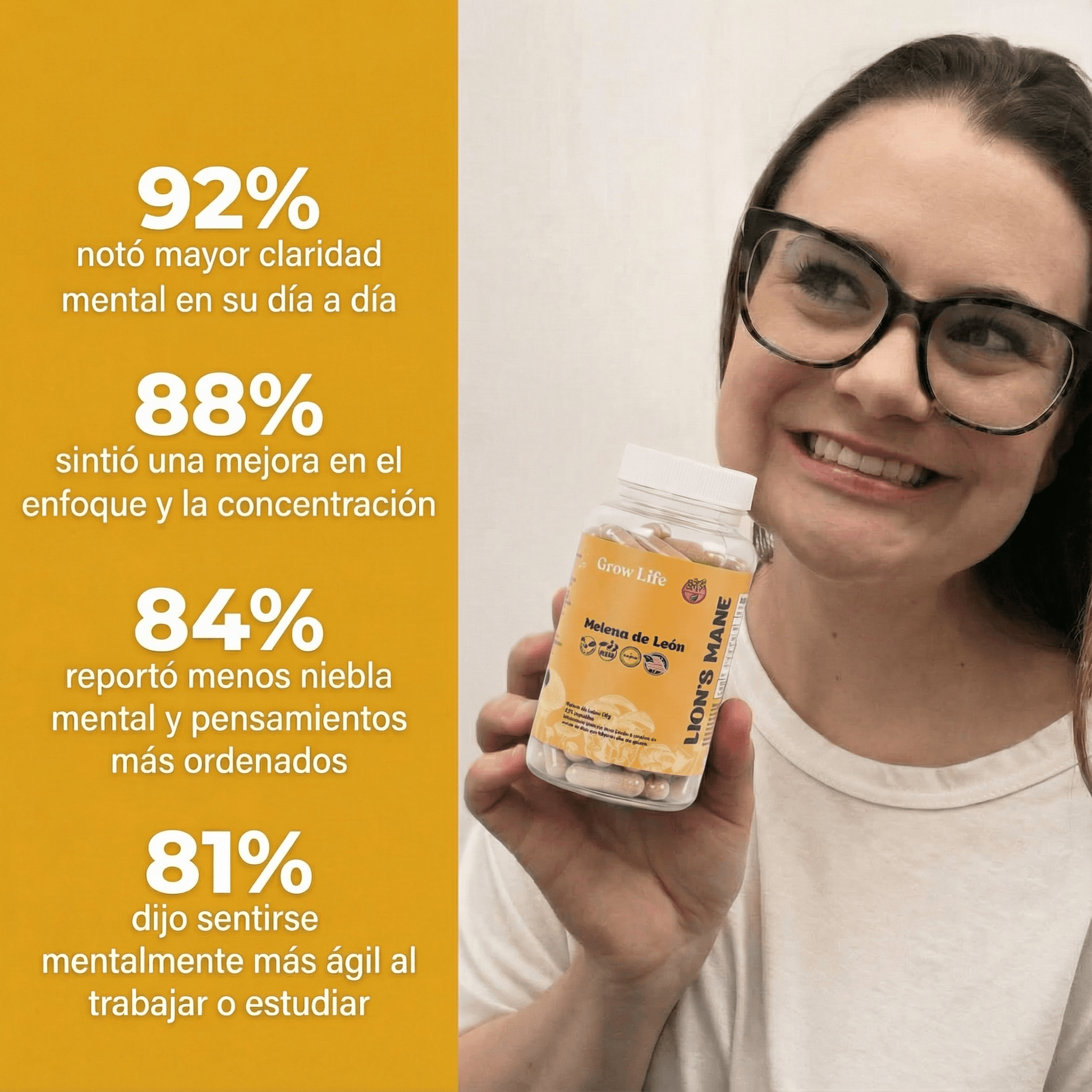 Muchas personas comienzan a percibir mayor claridad mental y mejor enfoque tras 2 a 4 semanas de uso constante. Los resultados pueden variar según cada persona.